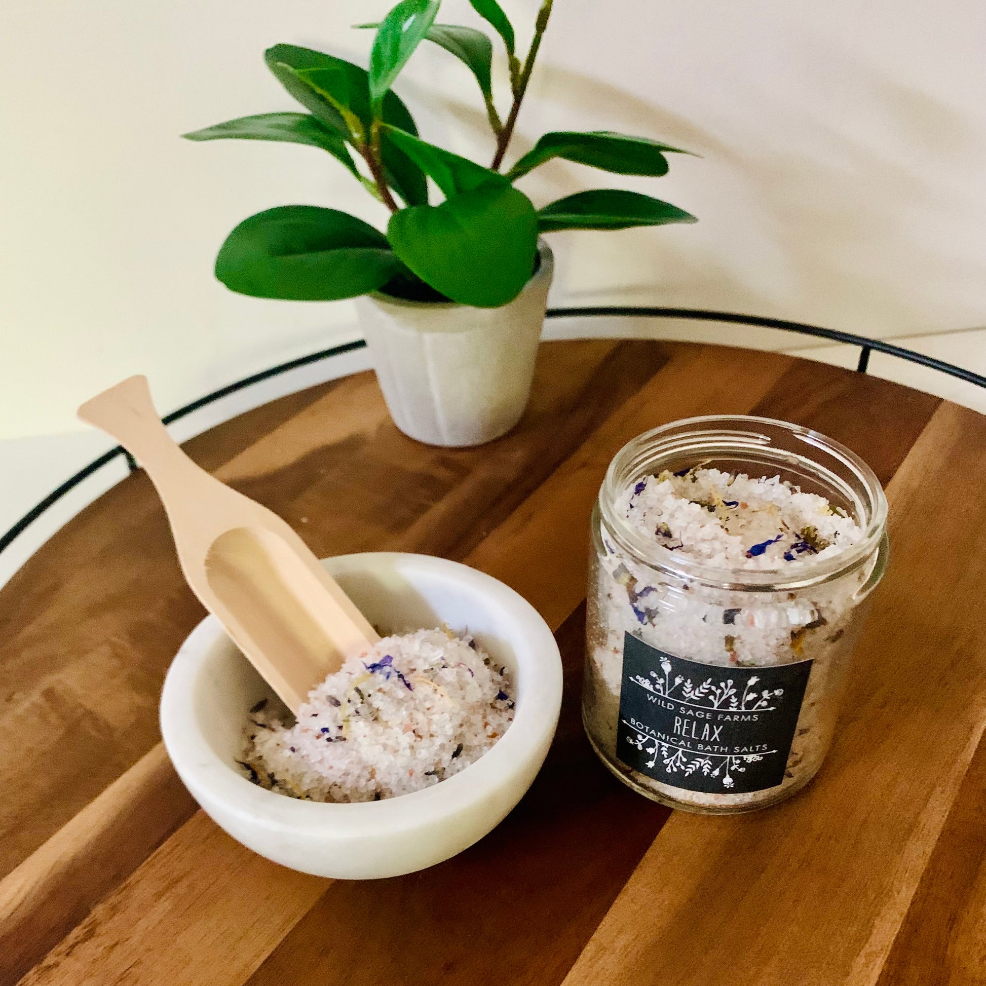 Indulge the senses and unwind the day with beautiful botanical bath salts embellished with dried organic flowers and herbs. Our botanical bath salts are truly a treat, contains the highest quality salts, organic dried flowers and essentials oils.